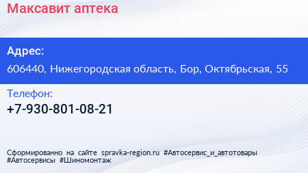 Максавит, аптека по адресу 606440, Нижегородская область, Бор, Октябрьская, 55 в дальнейшем Организация, размещена в следующих категориях: