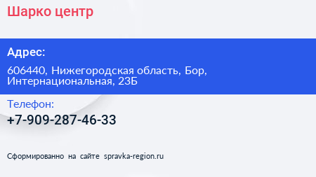 Шарко, центр по адресу 606440, Нижегородская область, Бор, Интернациональная, 23Б в дальнейшем Организация, размещена в следующих категориях: