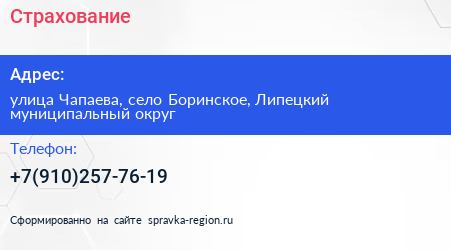 Страхование по адресу улица Чапаева, село Боринское, Липецкий муниципальный округ в дальнейшем Организация, размещена в следующих категориях: