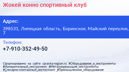 Жокей, конно-cпортивный клуб по адресу 398531, Липецкая область, Боринское, Майский переулок, 7 в дальнейшем Организация, размещена в следующих категориях: