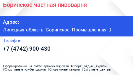 Боринское, частная пивоварня по адресу Липецкая область, Боринское, Промышленная, 1 в дальнейшем Организация, размещена в следующих категориях: