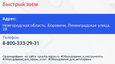 Быстрый заём по адресу Новгородская область, Боровичи, Ленинградская улица, 28 в дальнейшем Организация, размещена в следующих категориях: