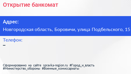 Открытие, банкомат по адресу Новгородская область, Боровичи, улица Подбельского, 15 в дальнейшем Организация, размещена в следующих категориях: