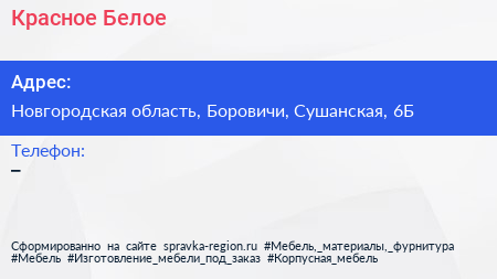 Красное & Белое по адресу Новгородская область, Боровичи, Сушанская, 6Б в дальнейшем Организация, размещена в следующих категориях: