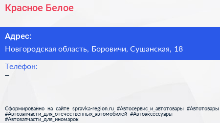 Красное & Белое по адресу Новгородская область, Боровичи, Сушанская, 18 в дальнейшем Организация, размещена в следующих категориях: