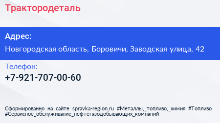 Трактородеталь по адресу Новгородская область, Боровичи, Заводская улица, 42 в дальнейшем Организация, размещена в следующих категориях: