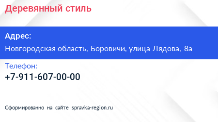 Деревянный стиль по адресу Новгородская область, Боровичи, улица Лядова, 8а в дальнейшем Организация, размещена в следующих категориях: