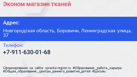Эконом, магазин тканей по адресу Новгородская область, Боровичи, Ленинградская улица, 37 в дальнейшем Организация, размещена в следующих категориях: