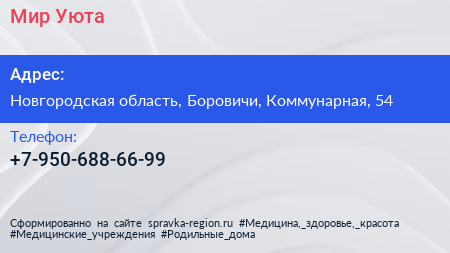 Мир Уюта по адресу Новгородская область, Боровичи, Коммунарная, 54 в дальнейшем Организация, размещена в следующих категориях: