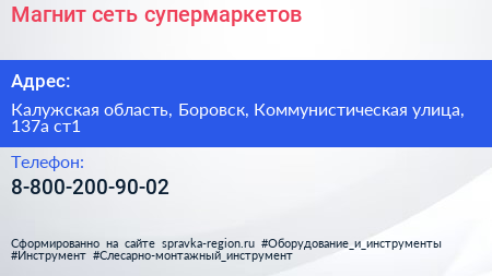 Магнит, сеть супермаркетов по адресу Калужская область, Боровск, Коммунистическая улица, 137а ст1 в дальнейшем Организация, размещена в следующих категориях: