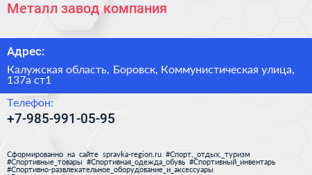 Металл-завод, компания по адресу Калужская область, Боровск, Коммунистическая улица, 137а ст1 в дальнейшем Организация, размещена в следующих категориях: