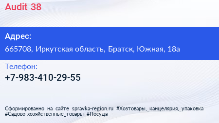 Audit 38 по адресу 665708, Иркутская область, Братск, Южная, 18а в дальнейшем Организация, размещена в следующих категориях: