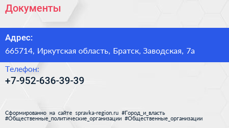 Документы+ по адресу 665714, Иркутская область, Братск, Заводская, 7а в дальнейшем Организация, размещена в следующих категориях: