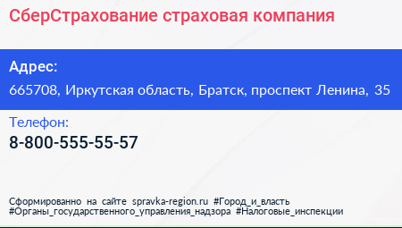 СберСтрахование, страховая компания по адресу 665708, Иркутская область, Братск, проспект Ленина, 35 в дальнейшем Организация, размещена в следующих категориях:
