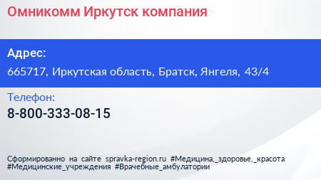 Омникомм-Иркутск, компания по адресу 665717, Иркутская область, Братск, Янгеля, 43/4 в дальнейшем Организация, размещена в следующих категориях: