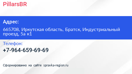 PillarsBR по адресу 665708, Иркутская область, Братск, Индустриальный проезд, 5а к1 в дальнейшем Организация, размещена в следующих категориях: