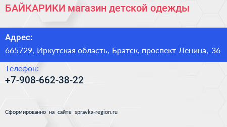БАЙКАРИКИ, магазин детской одежды по адресу 665729, Иркутская область, Братск, проспект Ленина, 36 в дальнейшем Организация, размещена в следующих категориях: