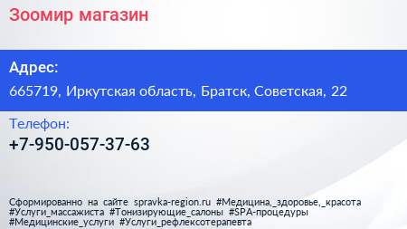 Зоомир, магазин по адресу 665719, Иркутская область, Братск, Советская, 22 в дальнейшем Организация, размещена в следующих категориях: