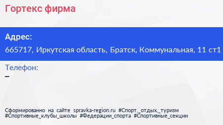 Гортекс, фирма по адресу 665717, Иркутская область, Братск, Коммунальная, 11 ст1 в дальнейшем Организация, размещена в следующих категориях: