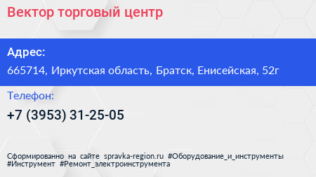 Вектор, торговый центр по адресу 665714, Иркутская область, Братск, Енисейская, 52г в дальнейшем Организация, размещена в следующих категориях: