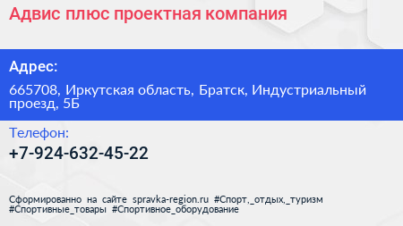 Адвис плюс, проектная компания по адресу 665708, Иркутская область, Братск, Индустриальный проезд, 5Б в дальнейшем Организация, размещена в следующих категориях: