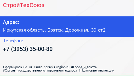 СтройТехСоюз по адресу Иркутская область, Братск, Дорожная, 30 ст2 в дальнейшем Организация, размещена в следующих категориях: