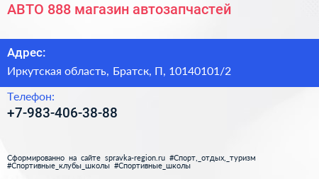 АВТО+888, магазин автозапчастей по адресу Иркутская область, Братск, П, 10140101/2 в дальнейшем Организация, размещена в следующих категориях: