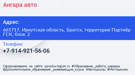 Ангара-авто по адресу 665717, Иркутская область, Братск, территория Партнёр ГСК, блок 2 в дальнейшем Организация, размещена в следующих категориях: