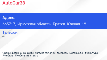 AutoCar38 по адресу 665717, Иркутская область, Братск, Южная, 19 в дальнейшем Организация, размещена в следующих категориях: