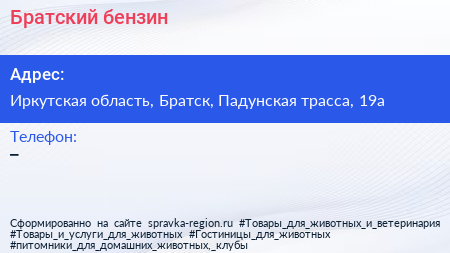 Братский бензин по адресу Иркутская область, Братск, Падунская трасса, 19а в дальнейшем Организация, размещена в следующих категориях: