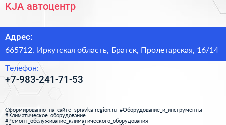 KJA, автоцентр по адресу 665712, Иркутская область, Братск, Пролетарская, 16/14 в дальнейшем Организация, размещена в следующих категориях: