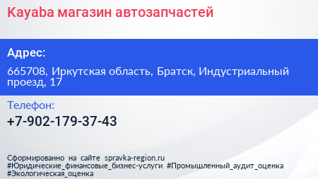 Kayaba, магазин автозапчастей по адресу 665708, Иркутская область, Братск, Индустриальный проезд, 17 в дальнейшем Организация, размещена в следующих категориях: