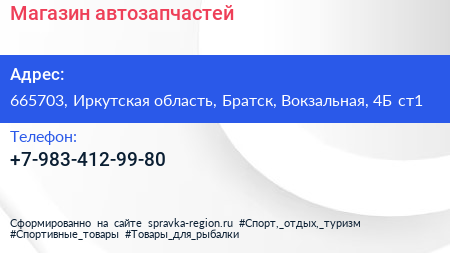 Магазин автозапчастей по адресу 665703, Иркутская область, Братск, Вокзальная, 4Б ст1 в дальнейшем Организация, размещена в следующих категориях: