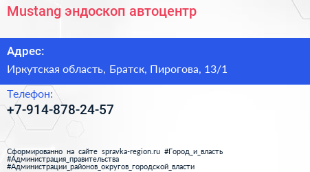Mustang- эндоскоп, автоцентр по адресу Иркутская область, Братск, Пирогова, 13/1 в дальнейшем Организация, размещена в следующих категориях: