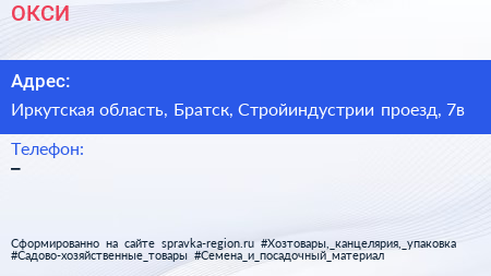 ОКСИ по адресу Иркутская область, Братск, Стройиндустрии проезд, 7в в дальнейшем Организация, размещена в следующих категориях: