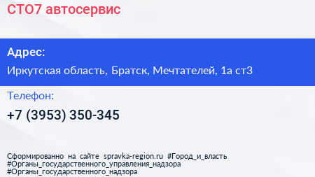 СТО7, автосервис по адресу Иркутская область, Братск, Мечтателей, 1а ст3 в дальнейшем Организация, размещена в следующих категориях: