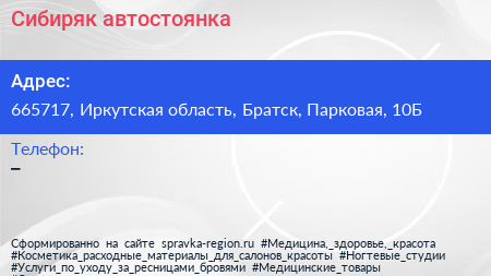 Сибиряк, автостоянка по адресу 665717, Иркутская область, Братск, Парковая, 10Б в дальнейшем Организация, размещена в следующих категориях: