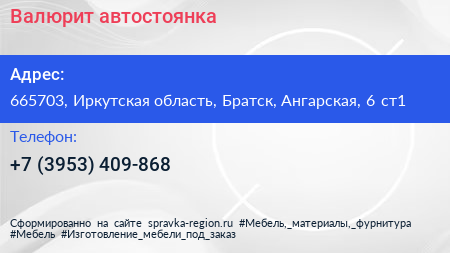 Валюрит, автостоянка по адресу 665703, Иркутская область, Братск, Ангарская, 6 ст1 в дальнейшем Организация, размещена в следующих категориях:
