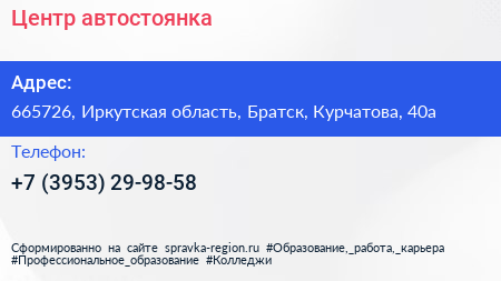 Центр, автостоянка по адресу 665726, Иркутская область, Братск, Курчатова, 40а в дальнейшем Организация, размещена в следующих категориях: