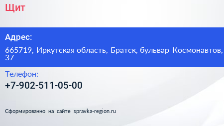 Щит по адресу 665719, Иркутская область, Братск, бульвар Космонавтов, 37 в дальнейшем Организация, размещена в следующих категориях: