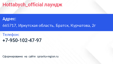 Hottabych_official, лаундж по адресу 665717, Иркутская область, Братск, Курчатова, 2г в дальнейшем Организация, размещена в следующих категориях: