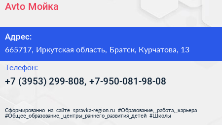 Avto Moйка по адресу 665717, Иркутская область, Братск, Курчатова, 13 в дальнейшем Организация, размещена в следующих категориях: