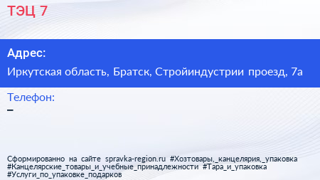 ТЭЦ-7 по адресу Иркутская область, Братск, Стройиндустрии проезд, 7а в дальнейшем Организация, размещена в следующих категориях: