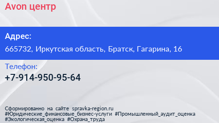 Avon, центр по адресу 665732, Иркутская область, Братск, Гагарина, 16 в дальнейшем Организация, размещена в следующих категориях: