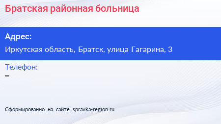 Братская районная больница по адресу Иркутская область, Братск, улица Гагарина, 3 в дальнейшем Организация, размещена в следующих категориях: