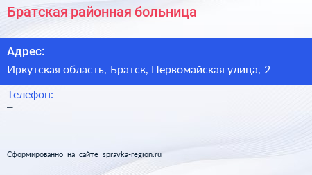 Братская районная больница по адресу Иркутская область, Братск, Первомайская улица, 2 в дальнейшем Организация, размещена в следующих категориях: