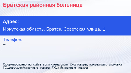 Братская районная больница по адресу Иркутская область, Братск, Советская улица, 1 в дальнейшем Организация, размещена в следующих категориях:
