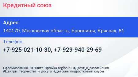 Кредитный союз по адресу 140170, Московская область, Бронницы, Красная, 81 в дальнейшем Организация, размещена в следующих категориях: