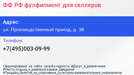 ФФ.РФ - фулфилмент для селлеров по адресу ул. Производственный проезд, д. 38 в дальнейшем Организация, размещена в следующих категориях:
