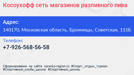 Косоухофф, сеть магазинов разливного пива по адресу 140170, Московская область, Бронницы, Советская, 115Б в дальнейшем Организация, размещена в следующих категориях: